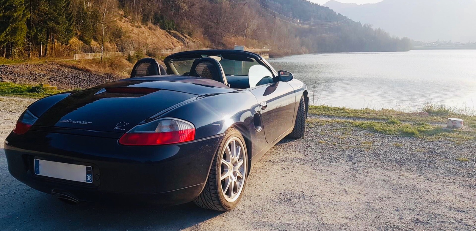 Pour moi Porsche c’est la classe, le prestige, le raffinement à l’allemande. Cette Boxster de 2000 c’est tout ça. La version que je possède est une version allemande FULL option autant niveau extérieur que intérieur. On retrouve une peinture bleue métallisée NachBlau, assez rare sur ces modèles, les grilles en alu brossé dans les aérations, des phares entièrement blancs (en option aussi, sinon il y a les clignotants oranges), et un pare vent derrière les sièges pour éviter au vent de rentrer dans l’habitacle.